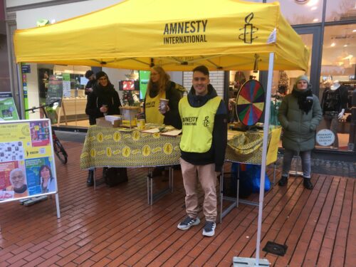 Am 7. Dezember 2024 trotzen wir Regen und Kälte und sammelten an unserem Stand im Seltersweg (zwischen Weihnachtsmarktständen) Unterschriften für die diesjährigen Fälle des Briefmarathons. Nach wenigen Stunden waren 90 Briefe unterschrieben und konnten an die Regierungen und Behörden in Angola, Ägypten, Argentinien, Belarus, Kanada, Saudi-Arabien, Südkorea Türkei und Vietnam gechickt werden.