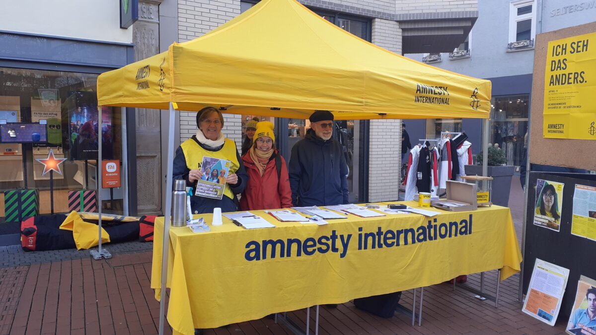 Unterschriftensammlung auf dem Seltersweg am Tag der Menschenrechte