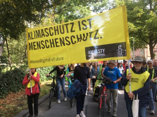 Mit dem Schutz des Klimas werden auch wichtige Menschenrechte geschützt, wie z.B. das Recht auf Wohnen, intakte Umwelt, Recht auf Leben. Daher beteiligenwir uns auch an Aktionen zum Klimaschutz