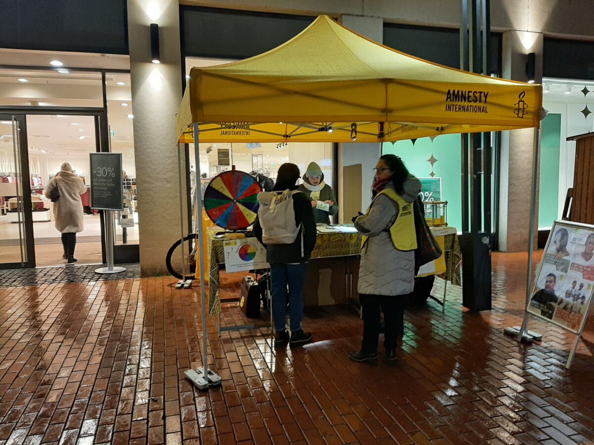 Unsere Gruppe beteiligte sich auch in diesem Jahr am Briefmarathon und wir sammeltn Unterschriften unter Briefen und Petitionslisten während des Festes für Demokratie und mit einem Informationsstand in der stadt am 6. Dezember 2025. Bei beiden Gelegenheiten fanden sich zahlreiche Menschen bereit, zur Unterstützung.